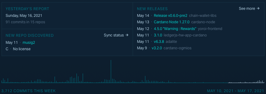 As part of that we get to see how hard they are working. Once again they’ve got the number one spot amongst all Crypto Projects for the number of commits (more than 3700 this week).