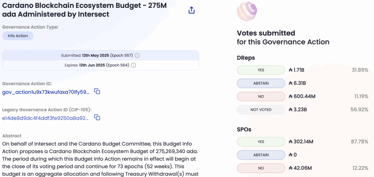 We have voted in favour of the governance action: “Cardano Blockchain Ecosystem Budget – 275M ada Administered by Intersect“: https://gov.tools/governance_actions/e14de8d9dc4f4ddf3fe9250a8a926e20f10e99b86bd0610b77d7a054981591ee#0 The period during which this Budget Info Action remains in effect will begin at the close of its voting period and continue for 73 epochs (52 weeks). This budget is an aggregate allocation and following…